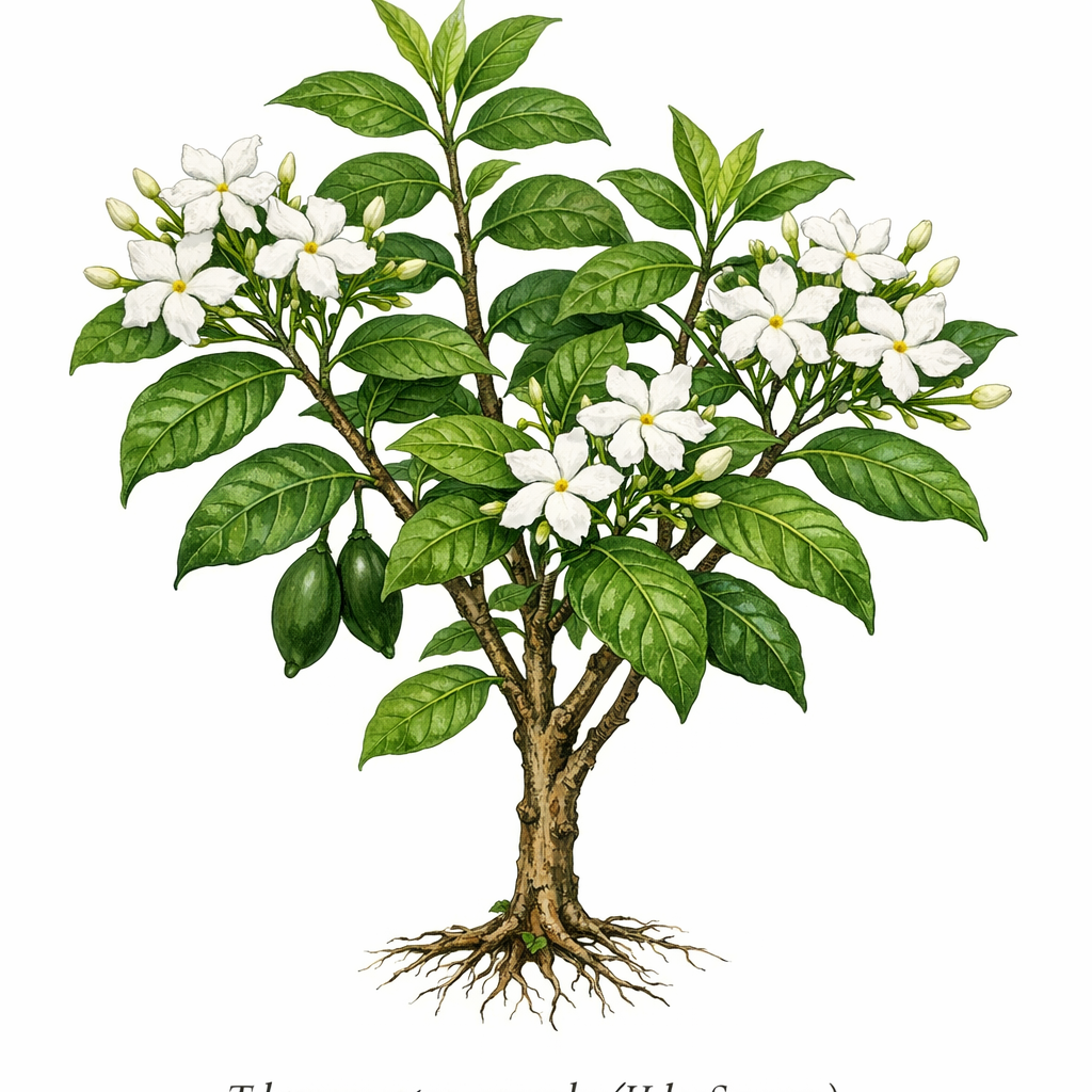 Мощный кустарник, «холодный сананго». Строгий, но благотворный учитель: перепрошивает нервную систему, усиливает силу воли и решительность.